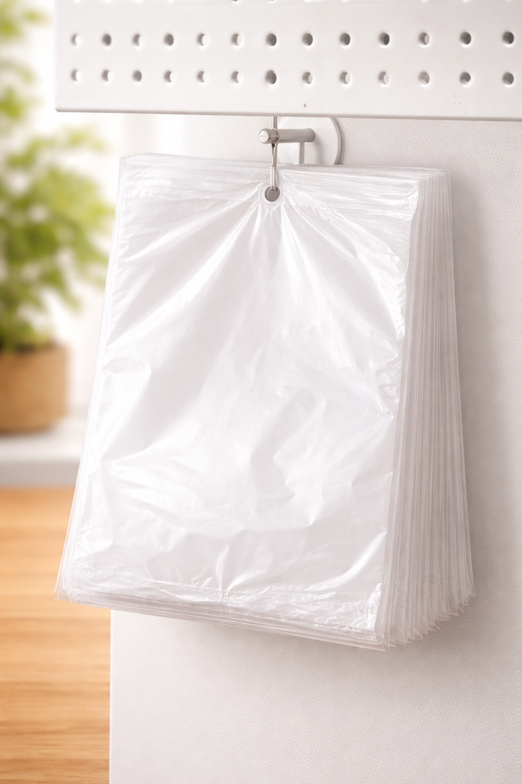 Sacos de polietileno de alta transparência com pino (bloco). Ideal para fixação em expositores e destaque rápido. Praticidade para o atendimento em balcão.